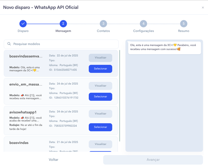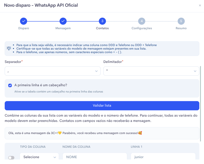 Disparo WhatsApp 3C+ API Oficial (WABA)