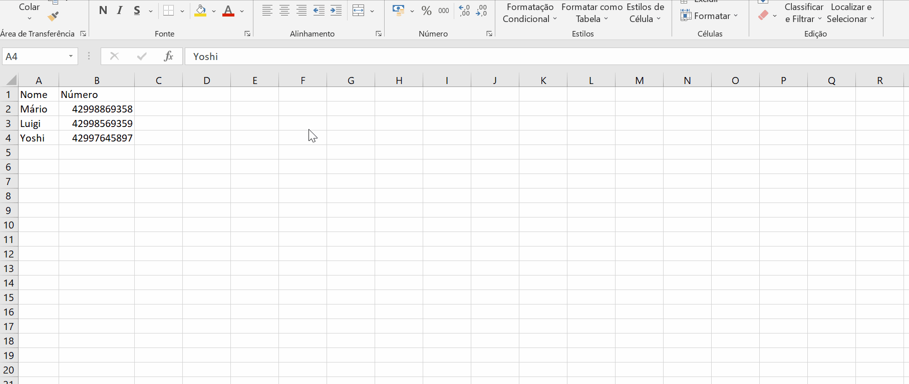 Garanta que as colunas com números de telefone estejam corretamente identificadas.