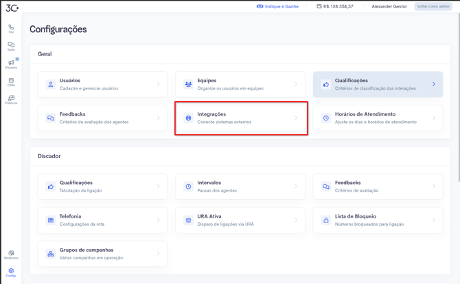Para habilitar: acesse Configurações do sistema (no menu lateral)→ Integrações e siga as instruções na tela para registrar o endpoint e concluir a ativação.