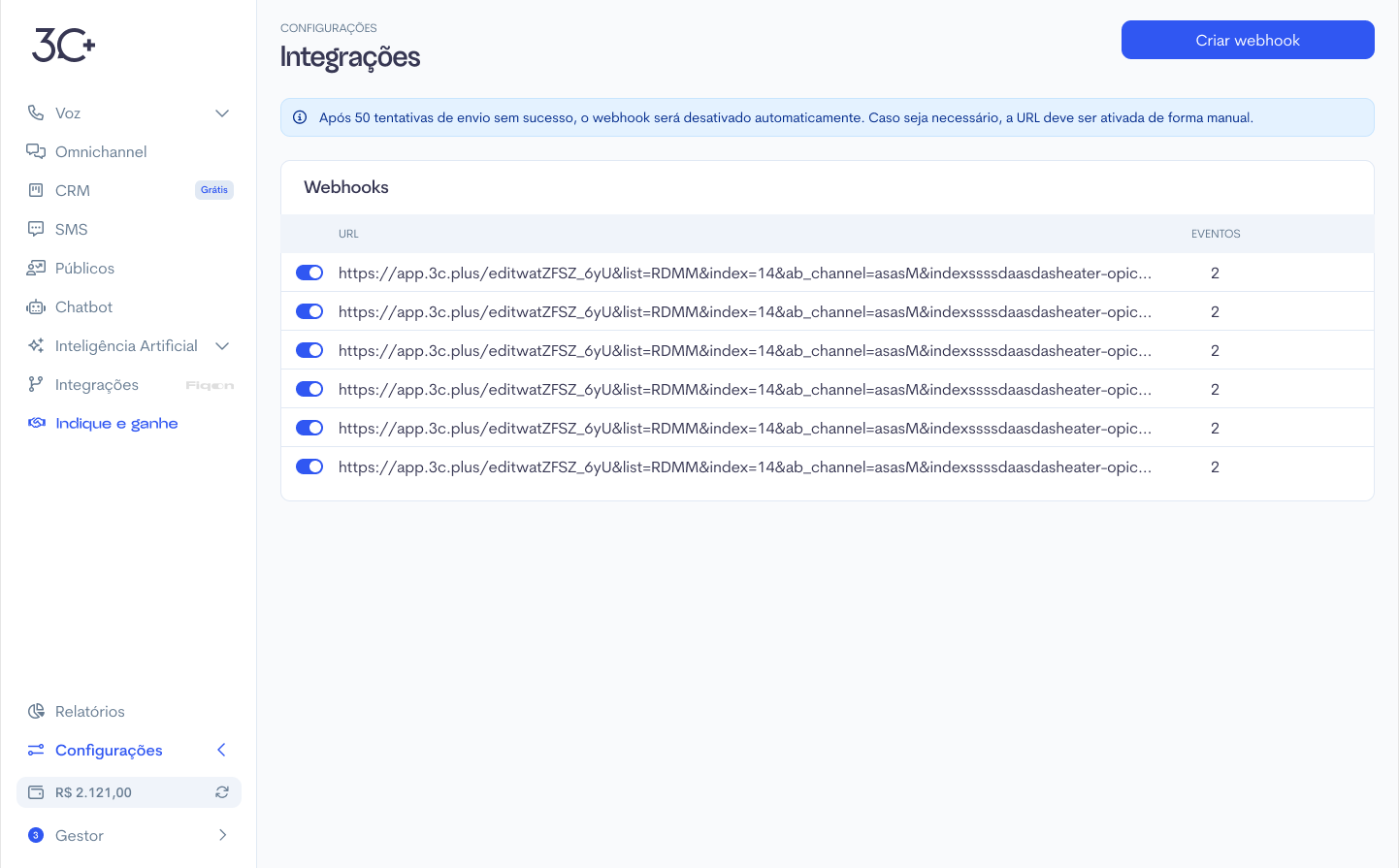 A 3C disponibiliza integração via webhooks, permitindo que seus sistemas recebam eventos do nosso ambiente em tempo real.
