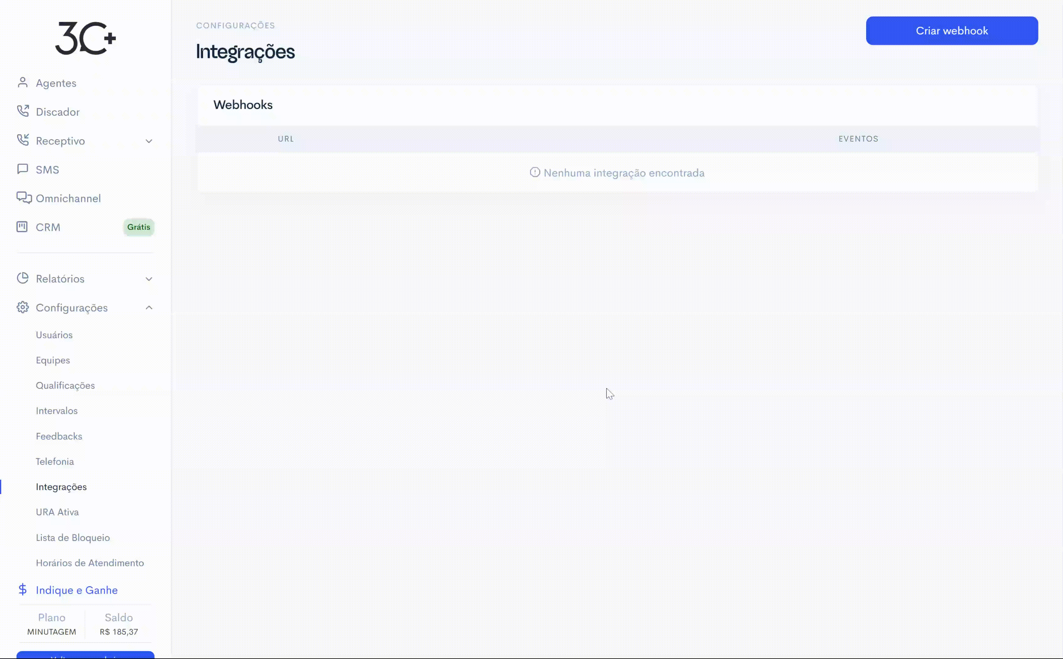 Obs: Os eventos para possível integração via webhook são: call-was-connected e call-history-was-created